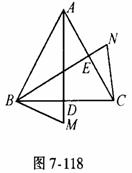 6.如图7-118,AD、BE分别是等边△ABC中BC、AC上的高.M、N分别在AD、BE的延长线上,∠CBM=∠ACN.求证:AM=BN.