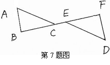 8. 如图是5×5的正方形网络,以点D、E为两个顶点作位置不同的格点三角形,使所作的格点三角形与△ABC全等,这样的格点三角形最多可以画出 ( )