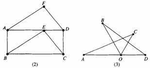 2.如图(2),△FAD与△EBC全等,其中F和E是对应顶点,写出相等的对应边和对应角,并指出△FAD到△EBC通过什么变换得到的?