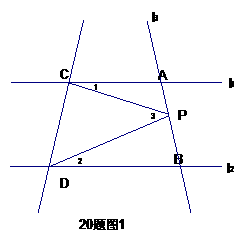 20、如图1,已知直线l1∥l2,且l3和l1、l2分别交于A、B两点,点P在直线AB上,