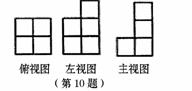 11.如图是由一些大小相同的小正方体组成的简单几何体的主视图和俯视图,若组成这个几何体的小正方体的块数为n,则n的所有可能的值之和为________________。