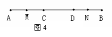 (14分)如图4,AB=24cm,C、D点在线段AB上,且CD=10cm,M、N分别是AC、BD的中点,求线段MN的长.