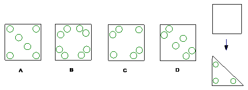 8.如图,将一块正方形纸片沿对角线折叠一次,然后在得到的三角形的三个角上各挖去一个圆洞,最后将正方形纸片展开,得到的图案是( )。