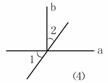 12.如图(4)直线a、b的夹角为90°,∠1=50°,则∠2=____________。