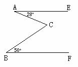 26、如图,已知直线AE∥BF,∠EAC=28°,∠FBC=50°,求∠ACB的度数.