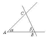 2、 如图,用字母A、B、C表示∠α、∠β.