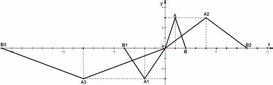 26、(12分)如图 在直角坐标系中第一次将△OAB变换成△OA1B1,第二次又变换△OA2B2第三次变换成△OA3B3,已知:A(1,3)A1(-2,-3)A2(4,3)A3(-8,3);B(2,0)B1(-4,0)