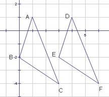13,如下图,在正方形网格中,将⊿ABC向右平移3个单位长度后,得到⊿DEF(其中点A、B、C的对应点分别为点D、E、F),若点A的坐标为(1,1),则点D的坐标为 。