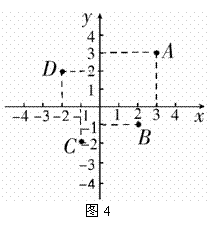 2.如图4,横坐标是正数,纵坐标是负数的点是( ).