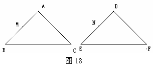 20,如图18,△ABC是△DEF经过平移得到的,若AD=4cm,则BE= ,CF= cm,若M为AB中点,N为DE中点,则MN= cm,若∠B=73°则∠E= .