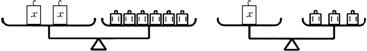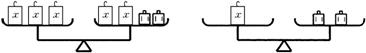 ②图中左右两边的天平想象成两个方程,你知道后一个方程是前一个方程经怎样的变化得到的?