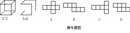 9.将一正方体纸盒沿下右图所示的线剪开,展开成平面图,其展开图的形状为( ).