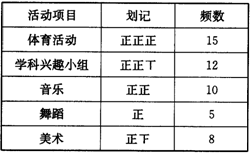 4.某位同学对全班50位同学最感兴趣的课外活动项目进行了调查,绘制成下面的统计表: