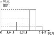已知学生的视力都大于3.95而小于5.40(均为3个有效数字),图中从左到右五个小长方形的高的比为1∶2∶3∶5∶1.视力最好的一组的频数为5,请你回答以下问题: