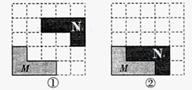 13. 在5×5方格中将图①中的图形N平移后的位置如图②中所示,那么正确的平移方法是 ( )