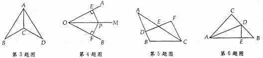 9.在△ABC内部取一点P使得点P到△ABC的三边距离相等,则点P应是△ABC的三条_______交点. ( )