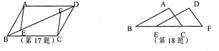 17、如图,已知AB∥CD,AD∥BC,E、F是BD上两点,且BF=DE,则图中共有_____对全等三角形,它们分别是____________________________________________________。