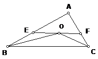 2、如图,在⊿ABC中,∠ABC和∠ACB的平分线交于点O,过O点作EF∥BC,交AB于E,交AC于F,BE=5cm,CF=3cm,求EF的长.(11分)
