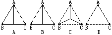 5、已知水厂A和工厂B、C正好构成一等边△ABC,现由水厂A为B、C两厂提供工业用水,要在A、B、C间铺设输水管道,有如下四种设计方案(图中实线为铺设管道路线),其中铺设路线最短的方案是( )