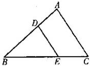 已知:如图,D、E分别在△ABC的边AB、BC上,且BD=6cm,AB=10cm,EC=3.6cm,BE=5.4cm,请你求出的值。