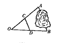 5、如图,要测量A、B两点间距离,在O点打桩,取OA中点C,OB中点D,测得CD=31.4米,则AB=_______________米。