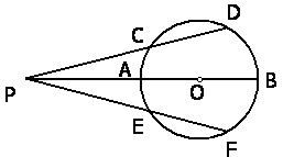 24.如图,PD、PB、PF分别交⊙O于C、D、A、B、E、F,PAB经过圆心O,(1)请你添加一个条件(不标注其它字母),使∠DPB=∠FPB。(3分) (2)证明你的方法的正确性。(5分)
