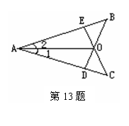 已知:如图,在AB、AC上各取一点E、D,使AE=AD.连结BD、CE相交于点O,连结AO,∠1=∠2.