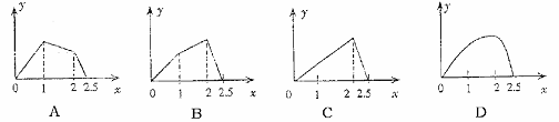 如图,点P按A→B→C→M的顺序在边长为1的正方形边上运动,M是CD边上的中点.设点P经过的路程x为自变量,△APM的面积为y,则函数y的大致图像是( )