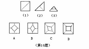 10、如图,两块完全重合的正方形纸片,如果上面的一块绕正方形的中心O左0°~90°的旋转,那么旋转时露出的△ABC的面积(S)随着旋转角度(n)的变化而变化,下面表示S与n关系的图象大致是( )