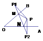 8、如图,点P为∠AOB内一点,分别作出P点关于OA、OB的对称点P1,P2,连接P1P2交OA于M,交OB于N,P1P2=15,则△PMN的周长为 。