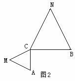 (3)将△ACM绕点C按逆时针方向旋转90º,其它条件不变,在图2中补出符合要求的图形,并判断(1)(2)结论是否仍然成立。(不要求证明)