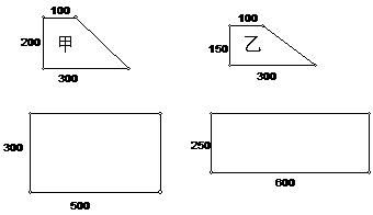 1、要剪切如图所示甲、乙两种直角梯形零件(尺寸单位:㎜),且使两种零件的数量相等,有两种面积相等的矩形铝板,第一种长500㎜,宽300㎜;第二种长600㎜,宽250㎜可供选用。为了充分利用材料,应选用第几种铝板?这时一块铝板最多能剪甲、乙两种零件共多少个?剪完这些零件后,剩余的边角料的面积是多少?