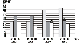 (1)从1992~2004年四届奥运会我国运动员共获奖牌多少枚?