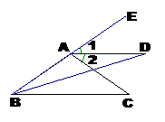 2、 如图,∠CAE是△ABC的外角,∠1=∠2,AD∥BC。