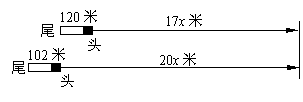 设从第一列车追及第二列车到两列车离开需要x秒,列方程得: