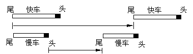 (1)车头相齐,同时同方向行进,画线段图如下: