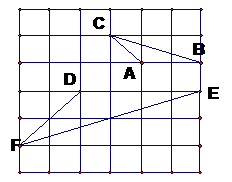 28、如图:在正方形网格上有△ABC,△DEF,说明这两个三角形相似,并求出它们的相似比。