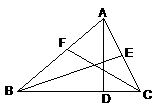 14、如图AD、BE、CF分别是△ABC的高、中线、角平分线,下列表达式中 错误的是( ) A、 AE=CE B、 ∠ADC=90°