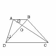 8、如图,梯形ABCD中,AB∥CD,对角线AC、BD交于点O,∠1=∠2,AB=2BO;