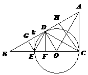 12、如图,⊙O切Rt△ABC直角边AC与斜边AB于C、D,DF⊥BC,CH、EF是AB垂线,KE⊥BC:①△DGE≌△DFE ;②△DFC≌△DHC ;③∠BDE=∠FDE;④DF是GE、CH比例中项;⑤OD是KE、AC比例中项;⑥△DOK≌△EOK;⑦△AOD≌△AOC