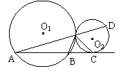 (南通市,1997)如图,过∠BAC的顶点A作⊙O交角的两边于点B、C,⊙O交该角的平分线于点D,DE切⊙O于点D,交AC边于点E。(1)求证:BD 2 = AB·CE;(2)若BD = 3,DE + CE = 12,,求DE。