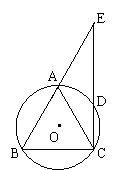 14.(咸宁地区,2000)如图,,等边△ABC内接于⊙O,D为AC上一点,CD的延长线与BA的延长线交于E。(1)求证:BC 2 = CD·CE;(2)如果CD = 1,DE = 3,求AE的长;