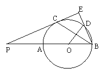 (南充市,2001)如图,AB是⊙O的直径,延长BA到点P,PC是⊙O的切线,切点为C,过点B作PC的垂线交⊙O于点D,交PC于点E,PA = 1,PC∶OD = ∶1。求(1)BC的长;(2)CD·DE的值;