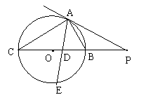 (辽宁省,1997)如图,PA为⊙O的切线,A为切点,PBC是过O的割线,PA = 10,PB = 5,∠BAC的平分线与BC和⊙O分别相交于点D和E。求(1)⊙O的半径;(2)sin∠BAP的值;(3)AD·AE的值;