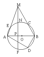 (北京市,2000)已知,如图,有△ABM,以AB为直径的⊙O交AM于点E,交BM于C。MP⊥AB于P,交⊙O于N、F。在AFB上取一点D,使BD = BC,AP = 1,PB = 3,S△ABDS△ABM =