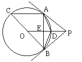 8.(广州市,1999)如图,等边三角形ABC的面积为S,⊙O是它的外接圆,点P是BC的中点。(1)试判断过点C所作⊙O的切线与直线AB是否相交,并证明你的结论。(2)设直线CP与AB相交于点D,过点B作BE⊥CD,垂足为E。证明:BE是⊙O的切线,并求△BDE的面积;