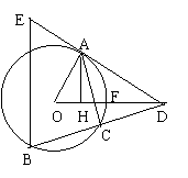 (10分)如图,已知割线DCB交⊙O于点C、B,DA切⊙O于点A,BE // CA,交DA于点E,OD交⊙O于点F,AH⊥OD,垂足为H,且OH∶HF = 2∶3,FD = 9,AE = 2,求cos∠ODB的值;