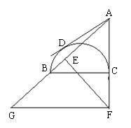 (7分)如图,已知BC为半圆的直径,AD与半圆相切于点D,在AB上截取AE = AD,过E作EF⊥AB,交AC的延长线于点F,过F作GF // BC,交AB的延长线于点G。求证:(1)AE·AB = AC·AF;(2)AB 2