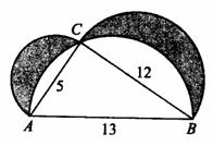 如图,已知△ABC的三边长为别为5,12,13,分别以三边为直径向上作三个半圆,求图中阴影部分的面积。