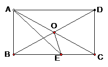 如图,在矩形ABCD中对角线AC、BD交于点O,∠AOB=60°,AE平分∠BAD,交BC于点E,求∠BOE的度数。